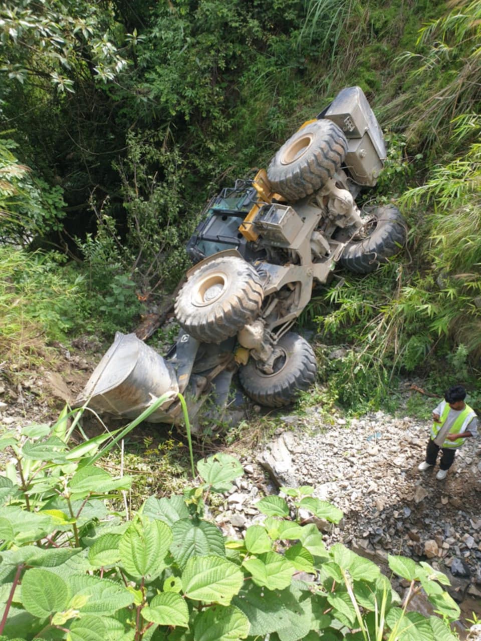 सिस्नेरी सडक खण्डमा ह्विल लोडर दुर्घटना, एक जना घाइते